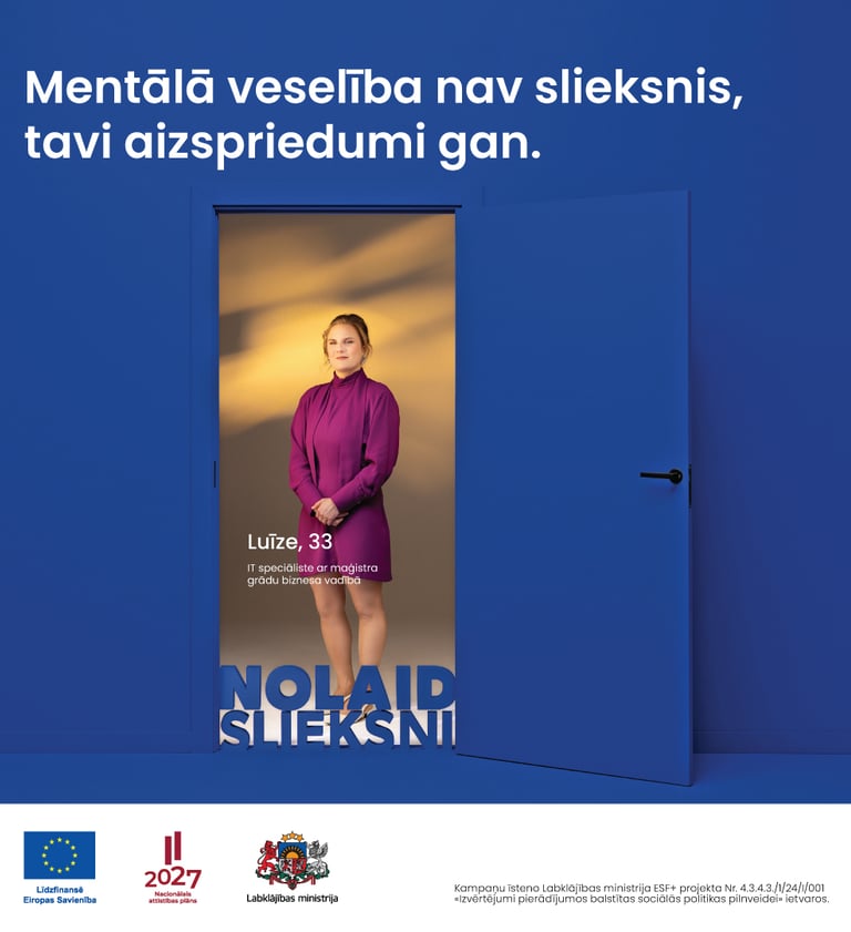 Kampaņu “Nolaid slieksni” īsteno Labklājības ministrija ESF+ projekta Nr. 4.3.4.3./1/24/I/001 “Izvērtējumi pierādījumos balstītas sociālās politikas pilnveidei” ietvaros.